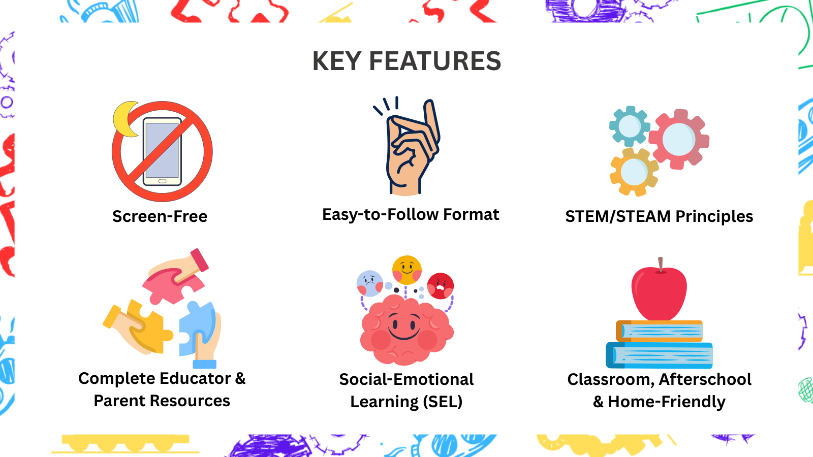 Currently, the series includes four stages:Understanding Problems, Creating Solutions, Let’s Invent, and Pitch Your Product. Each kit contains a relatable story featuring two characters facing a problem, guided activities, worksheets to lead the invention process, supervisor resources, and crafting supplies.